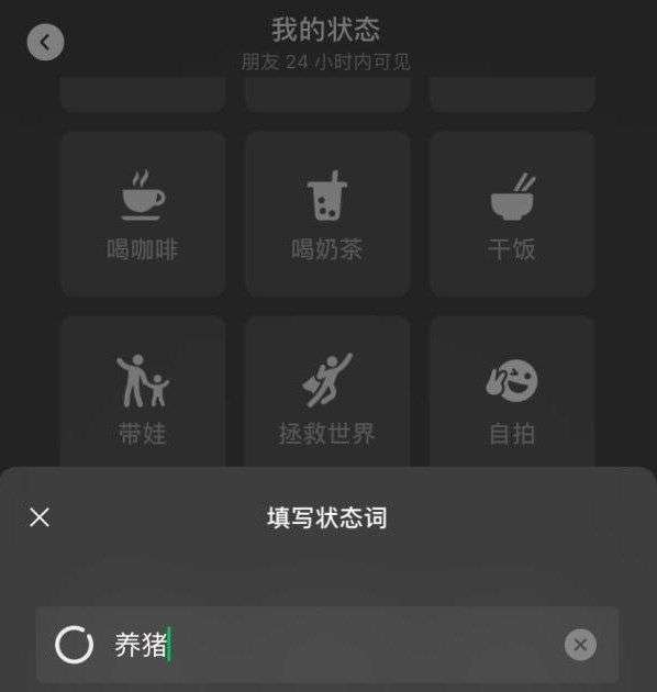 第二步:选择状态最后一项“其他”填写状态词“养猪”(或者你想养的动物)