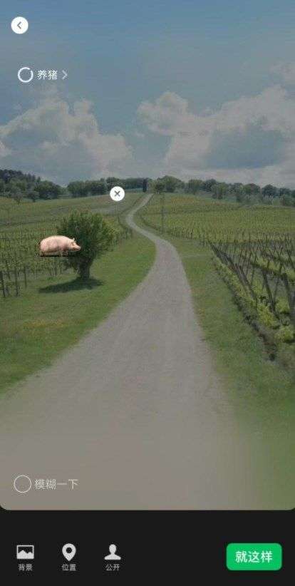 第六步:点击左下角“背景”,更换合适的背景图一个,“农场养猪”的状态就设置好了。