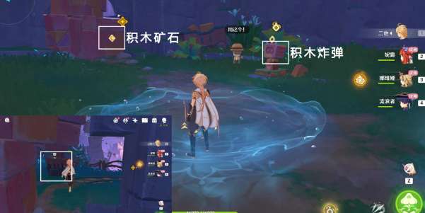 4、拾取积木炸弹,安装积木矿石上就可以了,在到河里,拾取龙鳞。