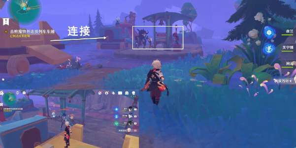 2、往地图的北方向走,击败丘丘人,连接车厢后,再次击败丘丘人。