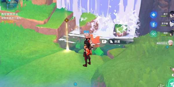 8、进入瀑布,拾取积木炸弹,把这个炸弹安装于积木矿石上。