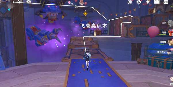 18、往地图的北方向走,利用飞高高积木,前往上层。