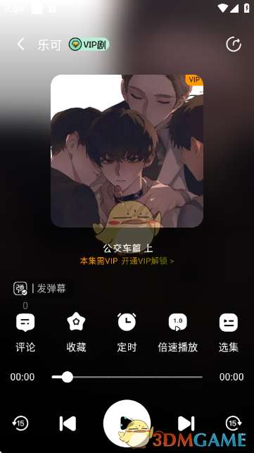 进入广播剧播放界面,可进行评论、收藏、设置定时、调整倍速播放、选择选集等操作,开始收听广播剧。