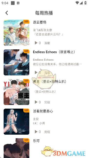 在“每周热播”列表中,可浏览当前热门的广播剧作品,了解其连载状态、主演等信息,选择感兴趣的作品收听。