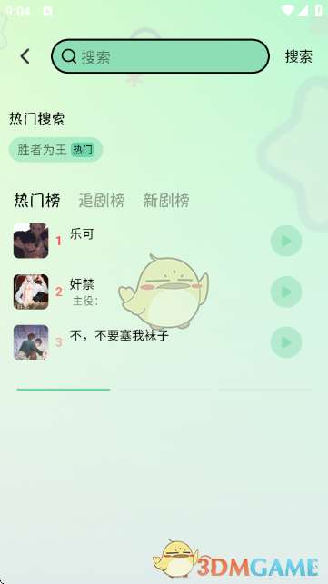 在搜索界面,可输入关键词搜索广播剧,也可查看热门搜索、热门榜、追剧榜、新剧榜的内容,快速找到热门作品。