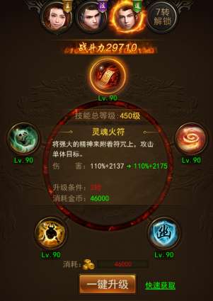 灵魂火符——将强大的精神来附着符咒上,攻击单体目标。