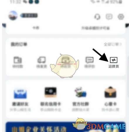 2、进入我的点击退换货选项。