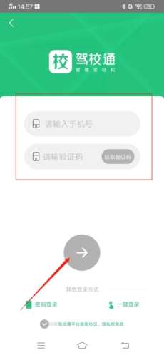3、然后在上方输入想要注册的手机号,获取验证码并输入,之后点击下方的“→”;