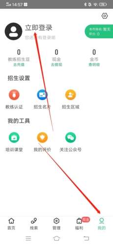 1、进入APP后,首先点击右下角“我的”,再点击上方的“立即登录”;