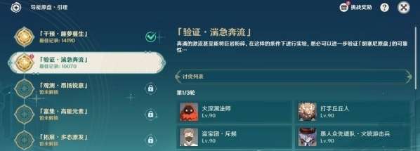 1、第1轮:第1轮:火深渊法师、打手丘丘人、盗宝团·斥候、愚人众先遣队·火铳游击兵、嗜雷·兽境幼兽/兽境猎犬、火史莱姆、大型火史莱姆、坚盾重甲蟹