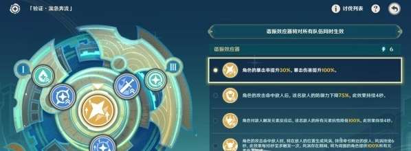2、【次级】元素战技或元素爆发命中后伤害+12%、普攻/重击与下落攻击命中后分别为队伍累计层数、触发元素反应后所有角色的元素精通+32。