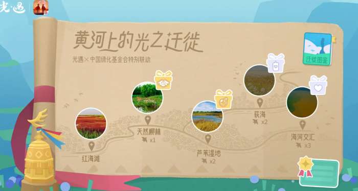 黄河迁徙季活动(12月18日-31日)期间,每日登录学习鸟类知识即可积累建设值。使用建设值可依次解锁五大保护区,分别兑换飞行尾迹、能量道具、蜡烛等奖励,集齐所有区域更能获得限定荣誉证书。