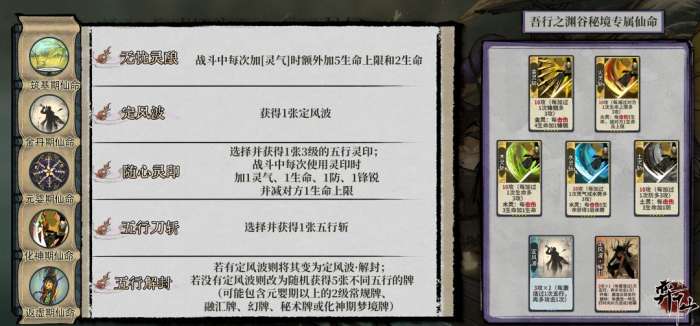 逍遥仙(化神期BOSS):被险境难度增强时,不再必定升级卡组中仅有的3张牌,也有可能升级普通攻击。