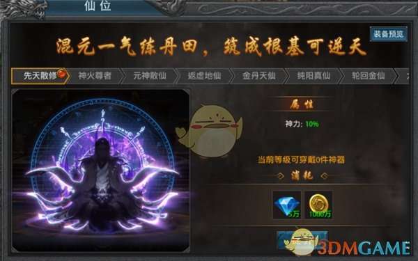 2、仙位等级越高,可穿戴神奇件数越多。最多可穿戴10件神器。