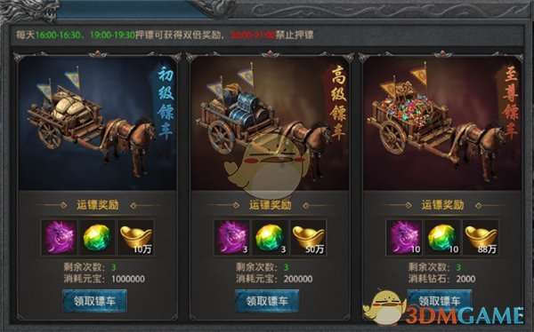 2、每天16:00-16:30、19:00-19:30押镖可获得双倍奖励