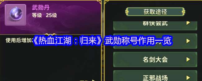 以上就是《热血江湖:归来》武勋称号作用一览,更多精彩内容,请点击关注pk游戏网,小编将持续为您更新!