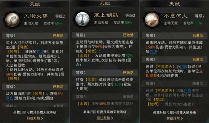 蔡文姬的天赋技能【塞上胡笳】,可以为陆逊提供治疗,并赋予【余音】效果,使陆逊发动追击技能后有42%概率额外发动1次该技能。