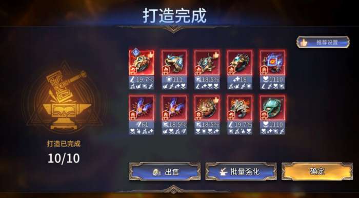 可通过“工坊”进入装备打造界面,在界面中可消耗猩红布匹、阴燃龙鳞打造T3装备、专属装备(英雄专属、阵营专属)。每次打造获得的装备类型(上古、异化)、部位、词条随机。