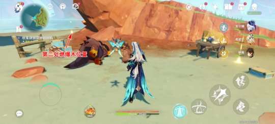 ◆营地附近海边发光点位置,收集此处两个“附近的「燃爆木」”