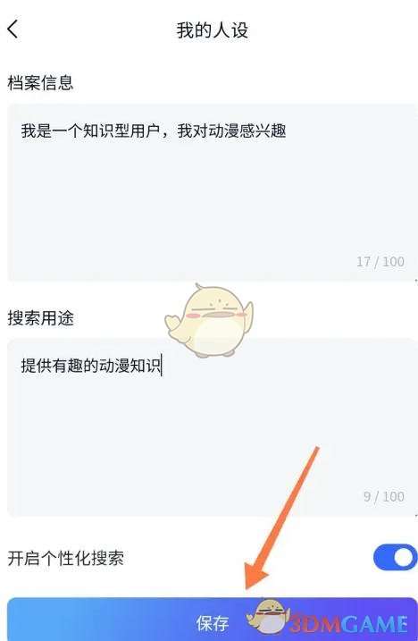 4、保存设置:输入完信息后,点击“保存”按钮,以保存您的人设设置。