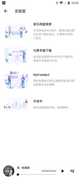 6、更绝的是还有实验室功能,针对各大音乐网站无法搜索到的歌曲,还能接入国内外和五音助手自己的音乐网盘,不管是国内还是国外再也不怕版权和谐了。