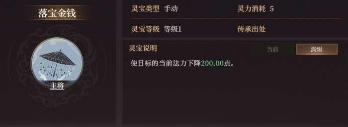 更厉害的是灵宝【落宝金钱】。满级可令目标当前法力下降200点,等于把现有的回蓝型术法发动10次的成果直接干废了。除了部分依靠普攻输出或蓝耗较低的阵容,其他队伍比如燃烧弓、西游骑等通过高频释放术法建立优势的阵容,被它点到输出就会大打折扣。