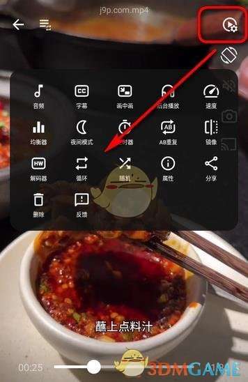 1、在Arc Player里播放视频时,点击右上角的设置图标即可打开更多播放选项。
