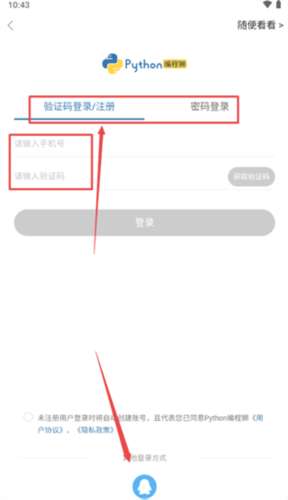 1、下载安装Python编程狮,用户需要登录自己的账号来登录后台,没有账号的用户可以使用手机号注册;