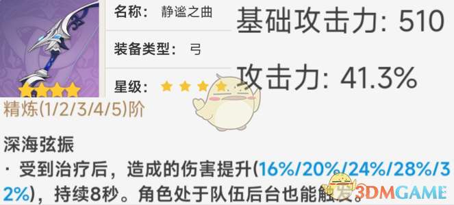 在原神中,有很多的小伙伴仅仅只是关注武器的外观,并没有详细的了解过武器的具体数据以及属性所以并不知道到底什么武器适配哪个角色,那么接下来小编就给大家详细的介绍一下静谧之曲武器数据吧,感兴趣的小伙伴千万不要错过了,希望能帮助到各位有需要的玩家们。