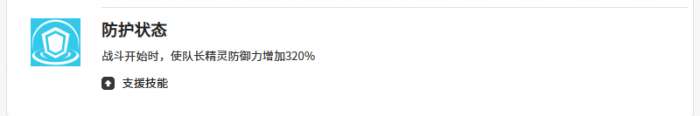 另外她在防护状态当中可以带来的支援能力也是不少的,只要克罗伊在战斗一开始的时候站在队长位置旁边,这里就可以利用技能效果来给队内的精灵带来防御力增加320%的数值,所以此时给我方带来的防御能力绝对是有非常高的数值,就是没有其他任何的协同技能可以使用,所以带来的队长能力比较简单,一如果大家能够为克洛伊搭配自身的遗物埃癸斯的话,那么在这里还可以带来信念之盾的能力,这个信念之盾触发成功,可以让她在使用自己主要技能不屈不挠的意志时,根据技能效果来追加一次体力上限10%的伤害,那么后续持续的时间能够达到14秒的效果。