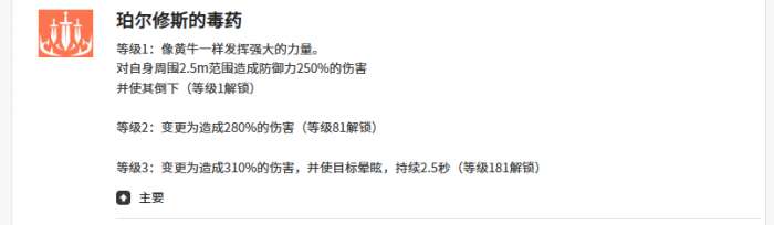战斗当中的克罗伊在技能珀尔修斯的毒药上面,可以发挥自身力量的属性效果,在这方面上面克罗伊是有一定强度可以释放自身优势的输出,可以对周身范围2.5m之内的敌人都造成防御力上面250%的伤害,所以在她防御力越高的时候,这里250%能够带来的基础含量就更高,有一定的概率触发的状态是倒下,只要敌人倒下的话,那么后期受到的影响就会更多。