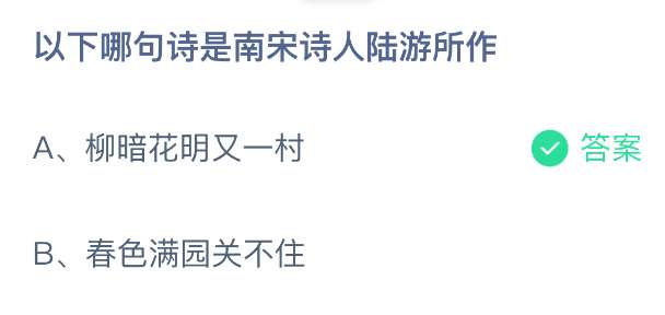 以上就是以下哪句诗是南宋诗人陆游所作?支付宝蚂蚁庄园2026年4月23日答案最新,更多相关攻略,请关注pk游戏网更新!