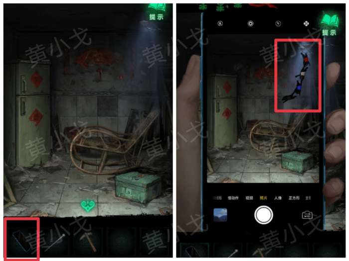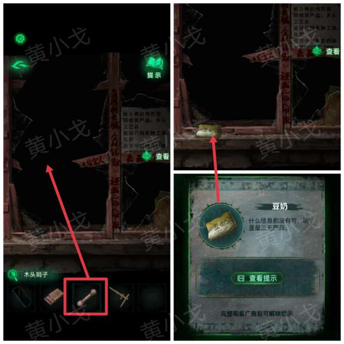 3.点击商店窗户,查看告示,拿出手机,获得线索