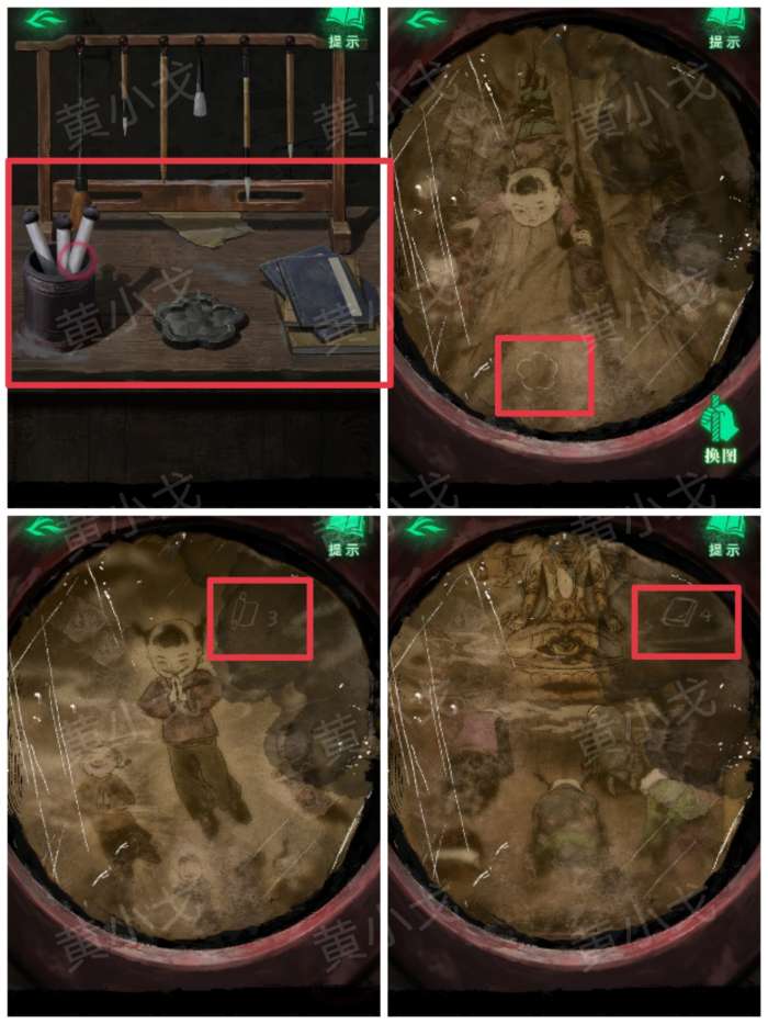 18.根据西洋镜画面上的线索,调整卷轴和书本的数量,调整砚台至正确的形状