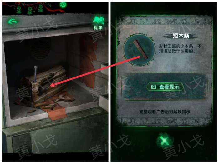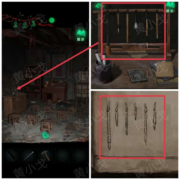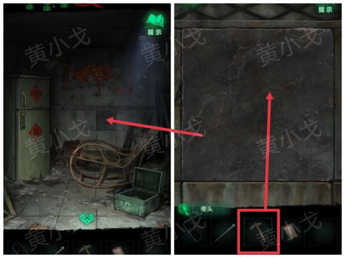 29.点击墙上特殊的砖块,用【榔头】敲碎
