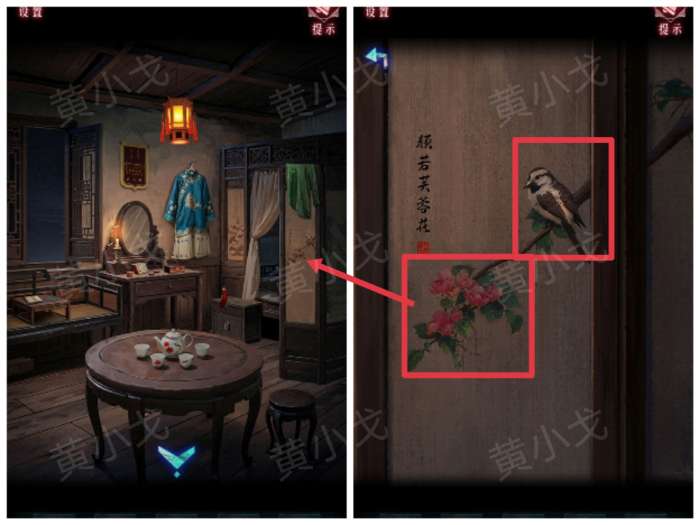 8.点击屏风,查看上面印着的花鸟图案的数量