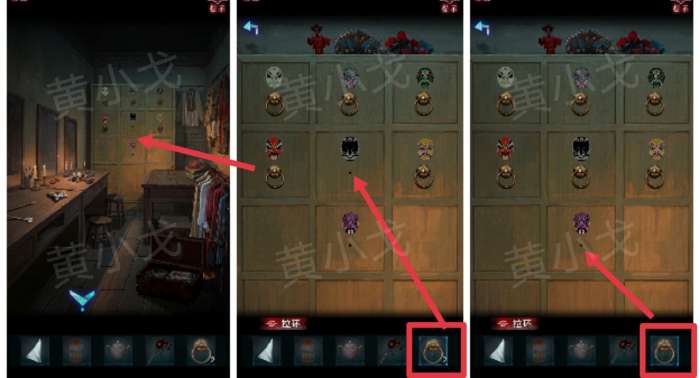 3.根据柜子上脸谱的颜色提示,结合墙上的文字线索,按顺序点击柜子