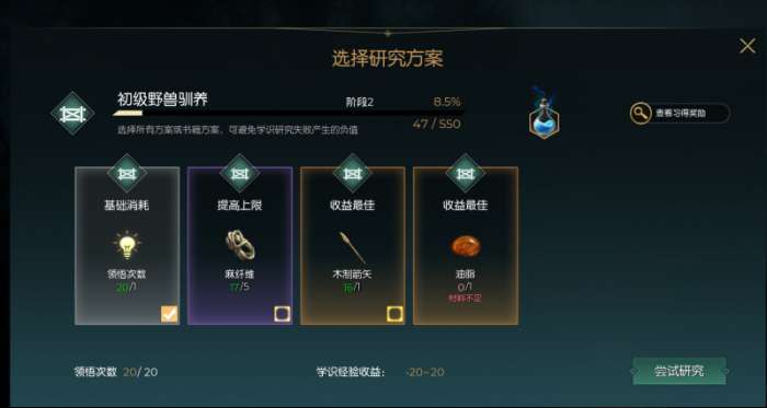 收益优化:通过点亮“收益最佳”素材节点,可消除负面效果(如经验值减少),并提升单次领悟的收益。