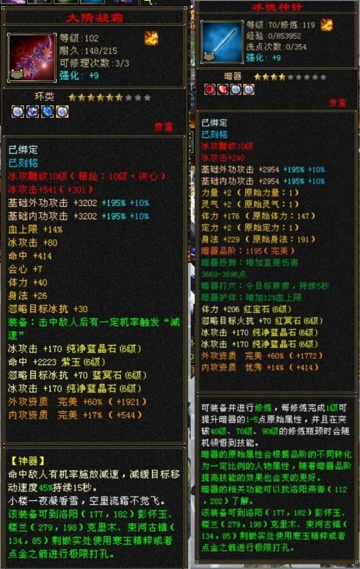 先上面板:血量54.9万,蓝量2.9万,外功攻击4.4万,命中8.5万,闪避2.7万,会心攻击707,会心防御426,主冰攻击7575,减冰抗806,减抗下限19!