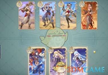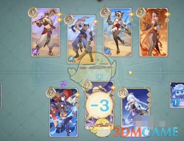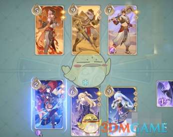 1、第一回合:需要三个雷骰子、三个水骰子,莫娜e菲谢尔e。