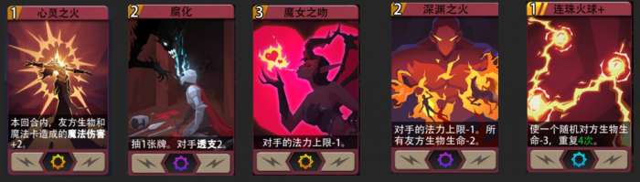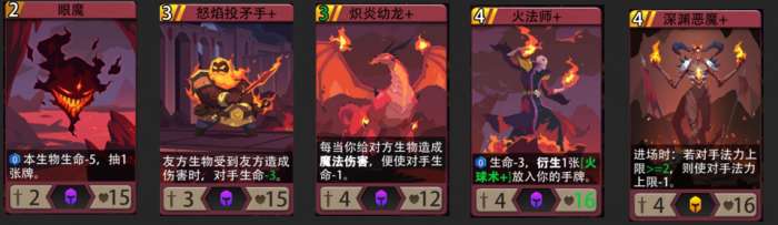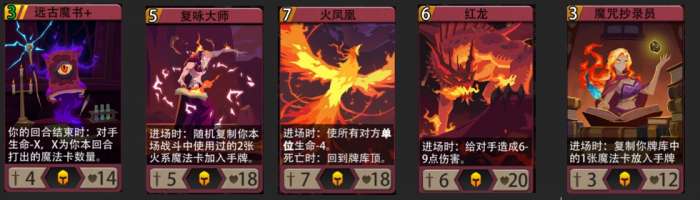 核心思路:利用多段法术伤害卡触发炽焰幼龙被动,配以冒失的新生或妖精战刀的增伤,对敌方造成直伤。特别推荐英雄:大聪明