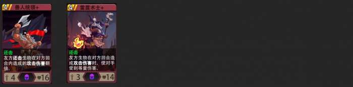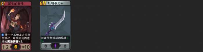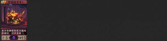 核心思路:利用自伤生物卡或自伤法术卡触发投矛被动,配以冒失的新生或妖精战刀的增伤,对敌方造成直伤。