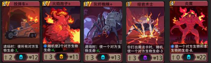 核心卡:怒焰投矛手+自伤生物卡/法术卡