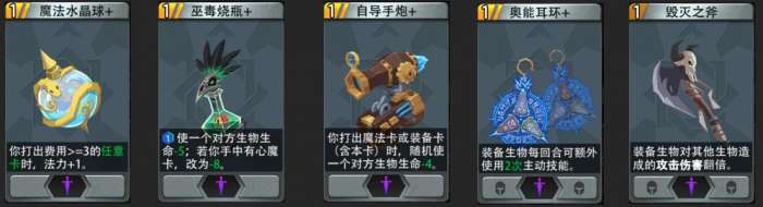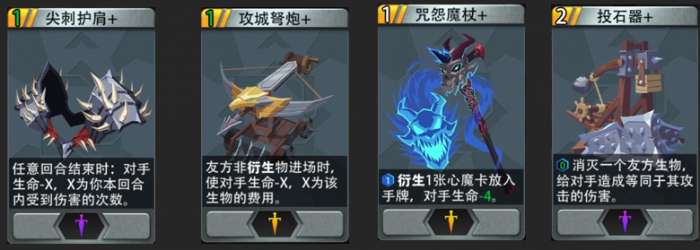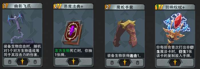 装备卡选择:直伤类≥回血类>辅助类,具体需参考对局金币持有量、血量及卡组来灵活选择,以下仅提供优质选择方向。