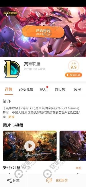2、小编选择人气比较高的英雄联盟游戏,点击进入英雄联盟游戏界面,点击开始游戏选项,等待排队进入游戏;