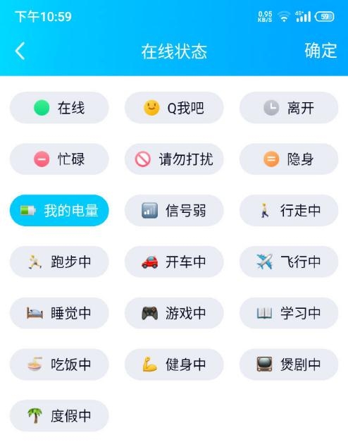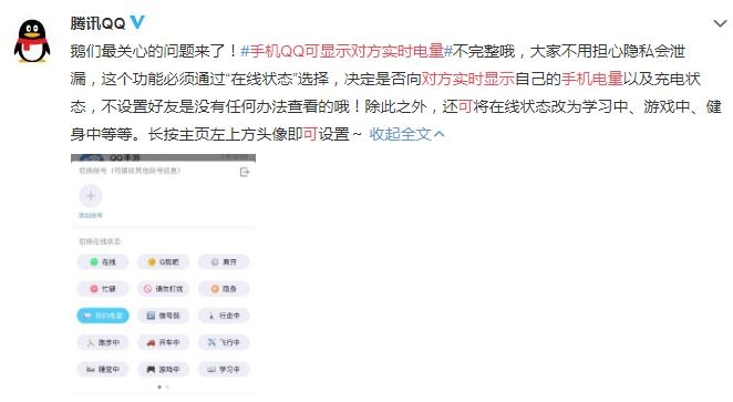 意思就是说,【我的电量】只是你在线状态的其中一个,你可以选择或者不选择,只有你主动选择,别人才会看得见。