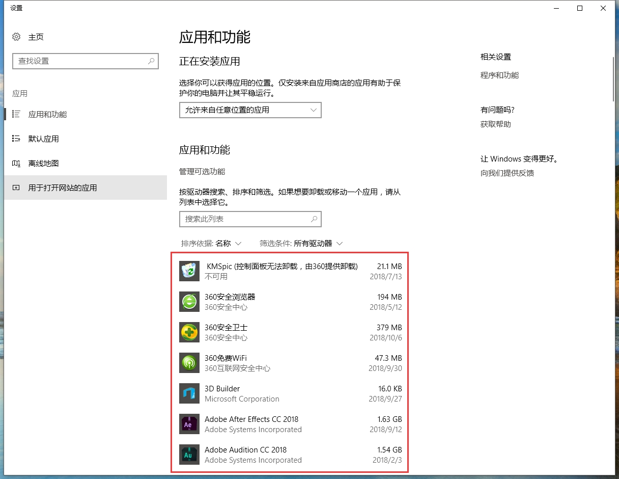 4、若觉得win10应用列表不友好,可以点击--相关设置--程序和功能,即可进入熟悉的添加/删除程序界面,点击需要卸载的程序即可。