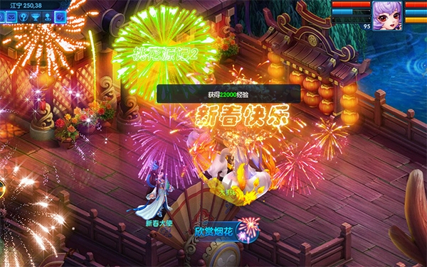 江宁的烟花又燃起来啦~江宁大船是观赏烟花的最佳地点,看烟花有丰厚的经验和物品奖励,欣赏完烟花还会自动帮大家进行巡城,叫上小伙伴们一起欣赏烟花吧!和烟花大使对话,还能变身成各种祥瑞的神兽,和小伙伴们一起庆祝新春哦!
