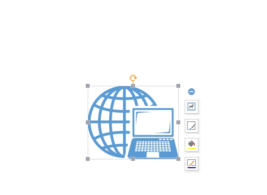 4、我们可以调整这个互联网图形的大小,方法是点击图形出现边界的小点以后,点击这些点进行拉伸就能随意更改图形的大小。