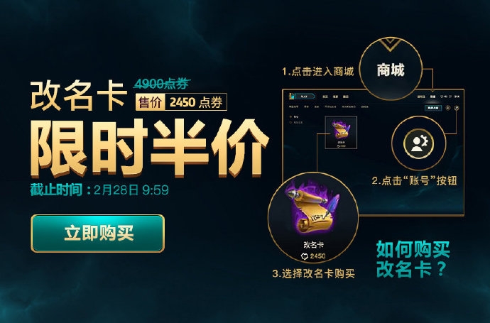 另外插播一条号外,LOL玩家注意,改名卡半价要来了!活动持续时间为2月14日-2月28日,有想好什么新ID震撼一下队友吗?